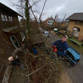 Dabei wurde erneut klar, wie wichtig ein regelmässiger, fachgerechter Schnitt ist. Werden Bäume über Jahre hinweg nicht zurückgeschnitten, verkahlen die Äste gegen innen, die Krone wird zu dicht, und Licht sowie Luft fehlen. Dann ist ein kräftiger Rückschnitt der schattenspendenden Äste früher nötig, als es vielen bewusst ist. Mit gezielten Schnitten versuchten wir, sowohl den Wünschen der Besitzer als auch den Bedürfnissen der Bäume gerecht zu werden – mit dem Ziel, dass am Ende Mensch und Baum „ein glückliches Gesicht“ haben.